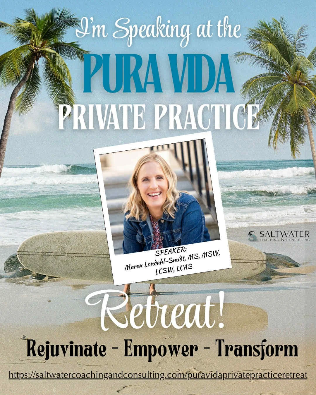 This January, I’m joining Denielle Rigoglioso-Lambert, owner of Saltwater Coaching & Consulting and creator of the 9-Thrive Private Practice Academy, for the Pura Vida Private Practice Therapist Retreat and you’re invited. This retreat brings together therapists from across the country for a unique mix of rest, rejuvenation, and business growth.